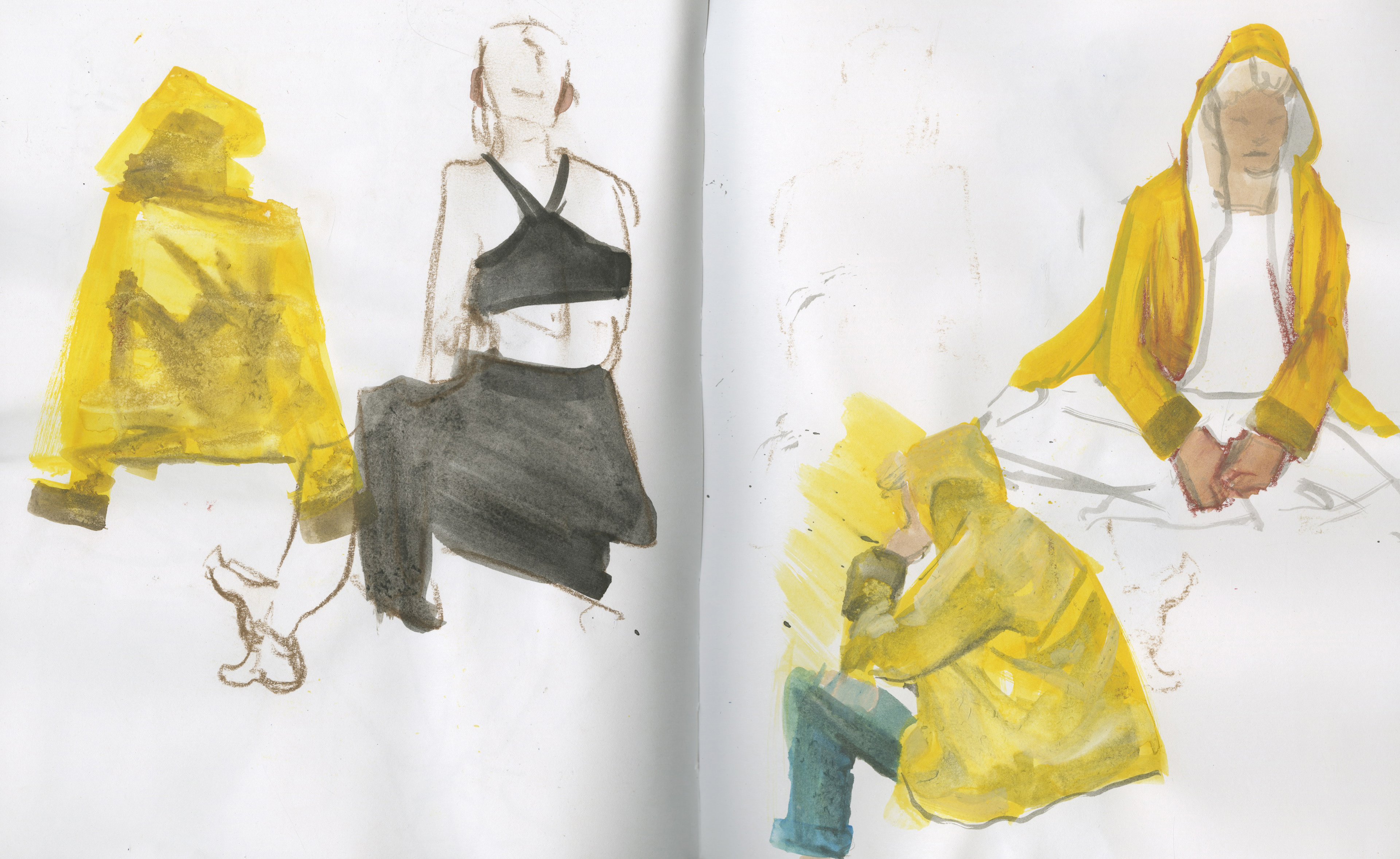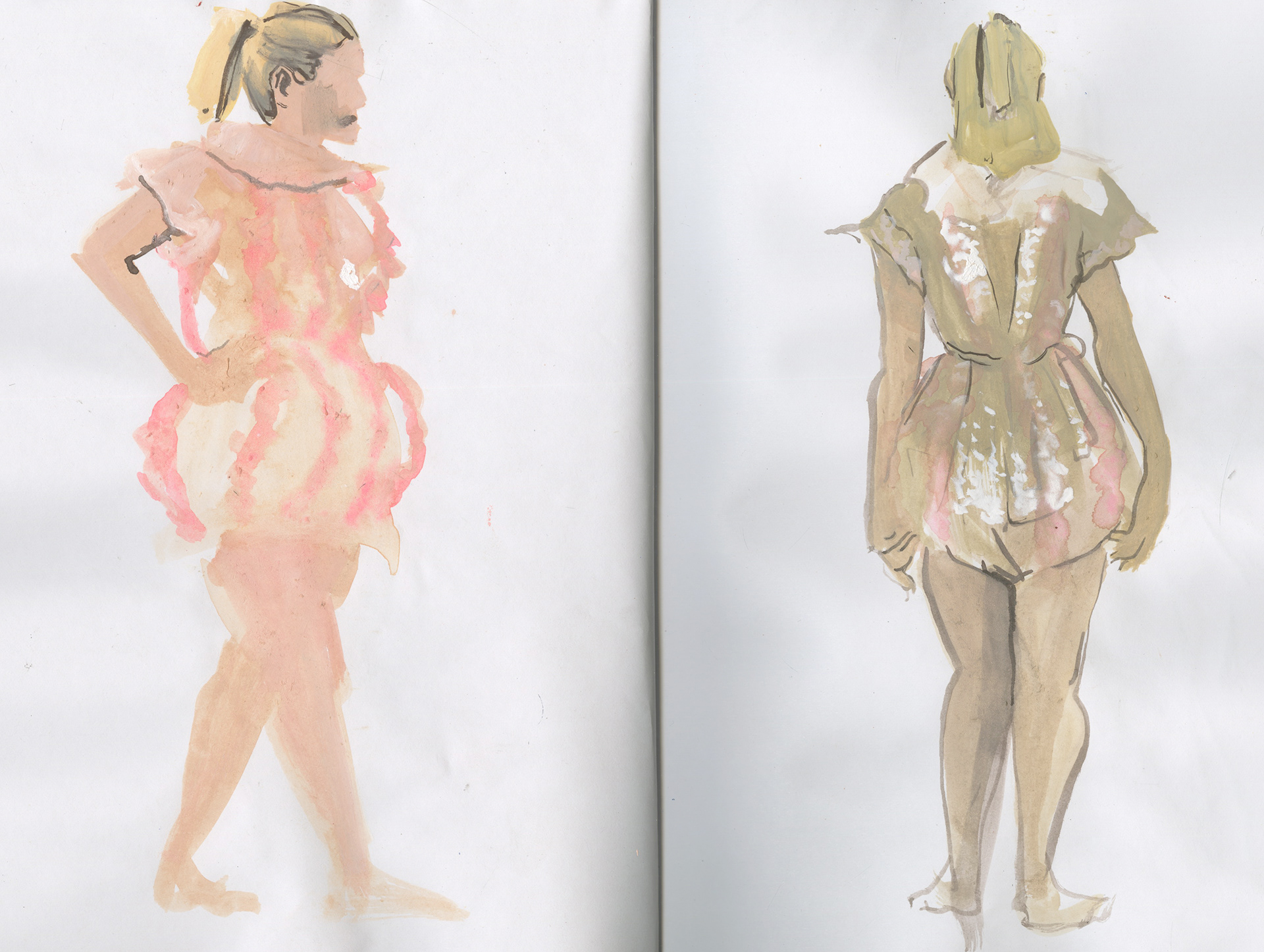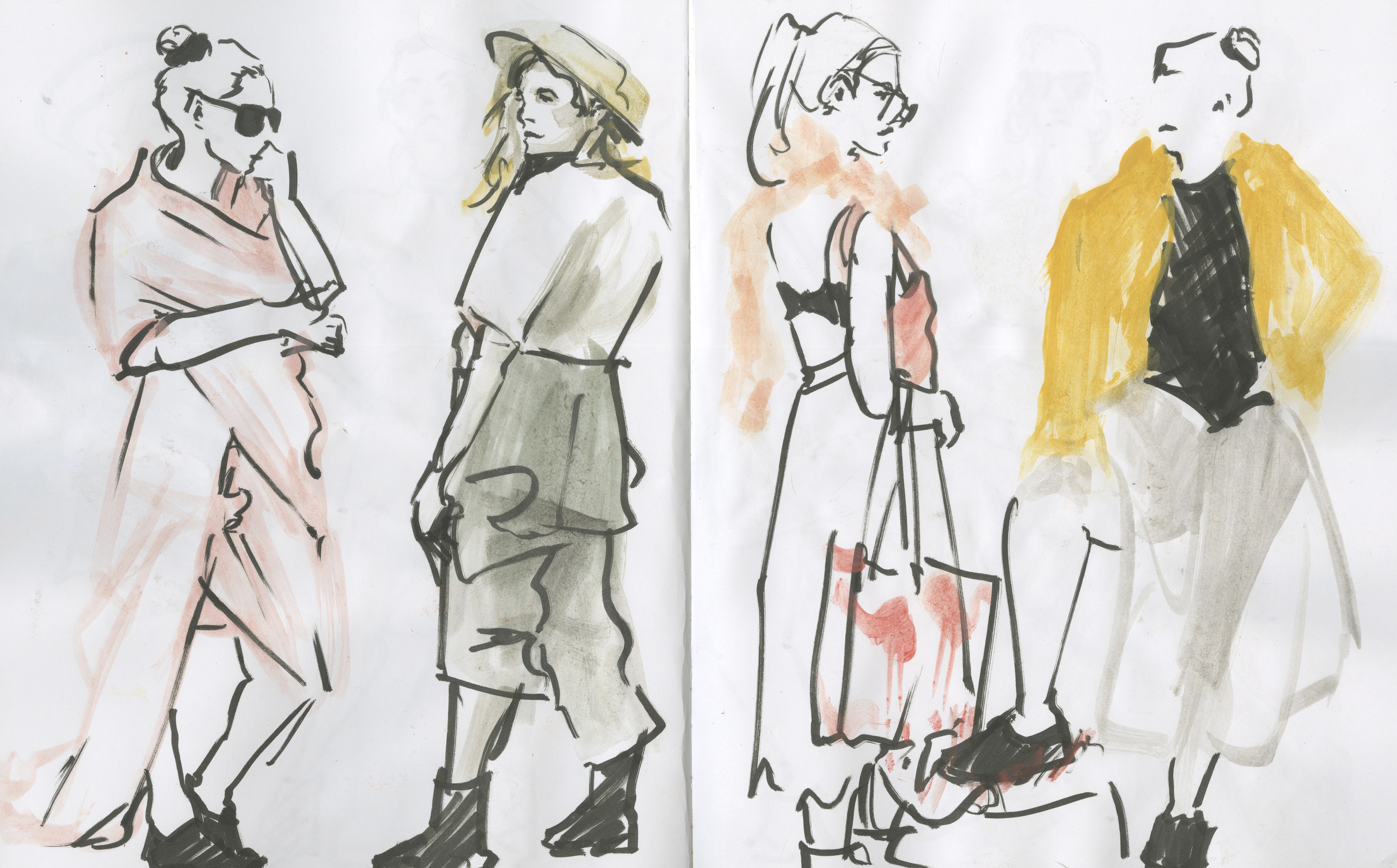 Live fashion sketches from 30 seconds to 5 minutes. Mixed Media.